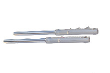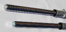 Co na to mam říct říct draci, Orig vidlice co dělavala fabrika v Březnice, je přestala dělat skoro před 8 lety. Ještě byla šance doposavad splašit nosné trubky ale ty jsou už taky v čudu a ty už jen tak nikdo neudělá a tak je poslední šance. Březnice před lety udělala snad ty nej. tlumiče za svou historii a to pro Německou fabriku MZ a ta je neodebrala a tak jsou tu. Samotný kluzáky MZ jsou k ničemu, jen pro odborníky co by udělal adapter na třmen, udaje pro Mz klzáky: vnitřní díra pro osu na stranu kde je bzdič je 17mm, druha strana 24,50mm. Spodní díra pro smontování M10. ale ty nosné trubky jsou lahůdka, jsou sice ve výsledku o 1cm delší ale za to běhají v červenem oleji, který je jak ma být v moderních moto. Žádný táhlo ale přepouštěcí kanálky, a to vše běhá v litinových pouzdrech Kluzákach MZ pro větší životnost. Orig staré kluzáky Brzenice jdou bez problému namontovat, jen je třeba u nových tlumičů použít dlouhý hvězdičkový klíč v díře k povolení a to se jen tak nesplaší. a pak už jen vyměnit horní jawa brejle, které používá pro své novodobé 350. Prostě kdo chce jezdit hodně a nebo luxusně,, tak je to nej,, jen pozor až se to vyproda,, tak se mě na nic neptejte,