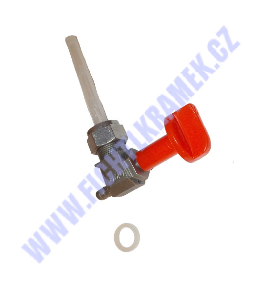 Díky malému závitu je určeno pro plastovou nádrž!!! ale kupuje se kvuli tomu čevenému knoflíku a následně se implantuje ja postarší kohout, mede in italie
